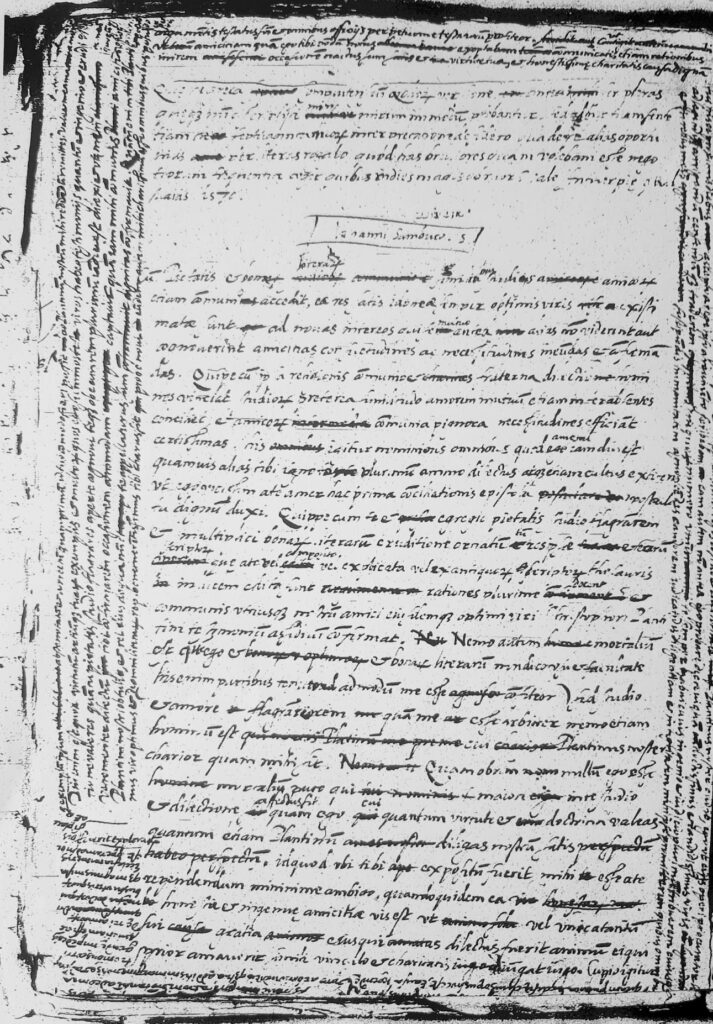 [6] Mi rey había ordenado poner un prólogo al frente de la Biblia conforme al argumento descrito por sus consejeros, de modo que expusiera lo que me pareciese oportuno acerca de la utilidad de los Libros Sagrados, la ventaja y utilidad de las lenguas, y la decisión del rey.3 Este prólogo lo he redactado estos días pasados mientras Plantino estaba fuera,4 cuya copia he decidido no enviársela al rey hasta que lo tenga corregido con la opinión y el valioso favor de vuestra merced, de cuyo consejo y ayuda he declarado más de una vez al rey y a sus consejeros que me he servido, especialmente yo, en todo el trabajo de la Biblia. [7] Cumplirá vuestra merced, por tanto, una tarea dignísima con esa benevolencia suya para conmigo, con una piedad singular respecto a la Iglesia y con una erudición egregia, si me envía lo antes posible la copia corregida o complentamente modificada, en caso de que así hubiera parecido bien a vuestra merced. Considere, sin embargo, que este trabajo no es mío o de cualquier particular, sino de vuestra merced, de todos los católicos, cuyas causas debe vuestra merced asumir no menos que yo. [8] Creo que se han dejado márgenes lo suficientemente amplios para hacer las anotaciones y correcciones. Use, por tanto, su juicio, al que siempre tendré en mucha consideración en todos los asuntos. [f. 196v]