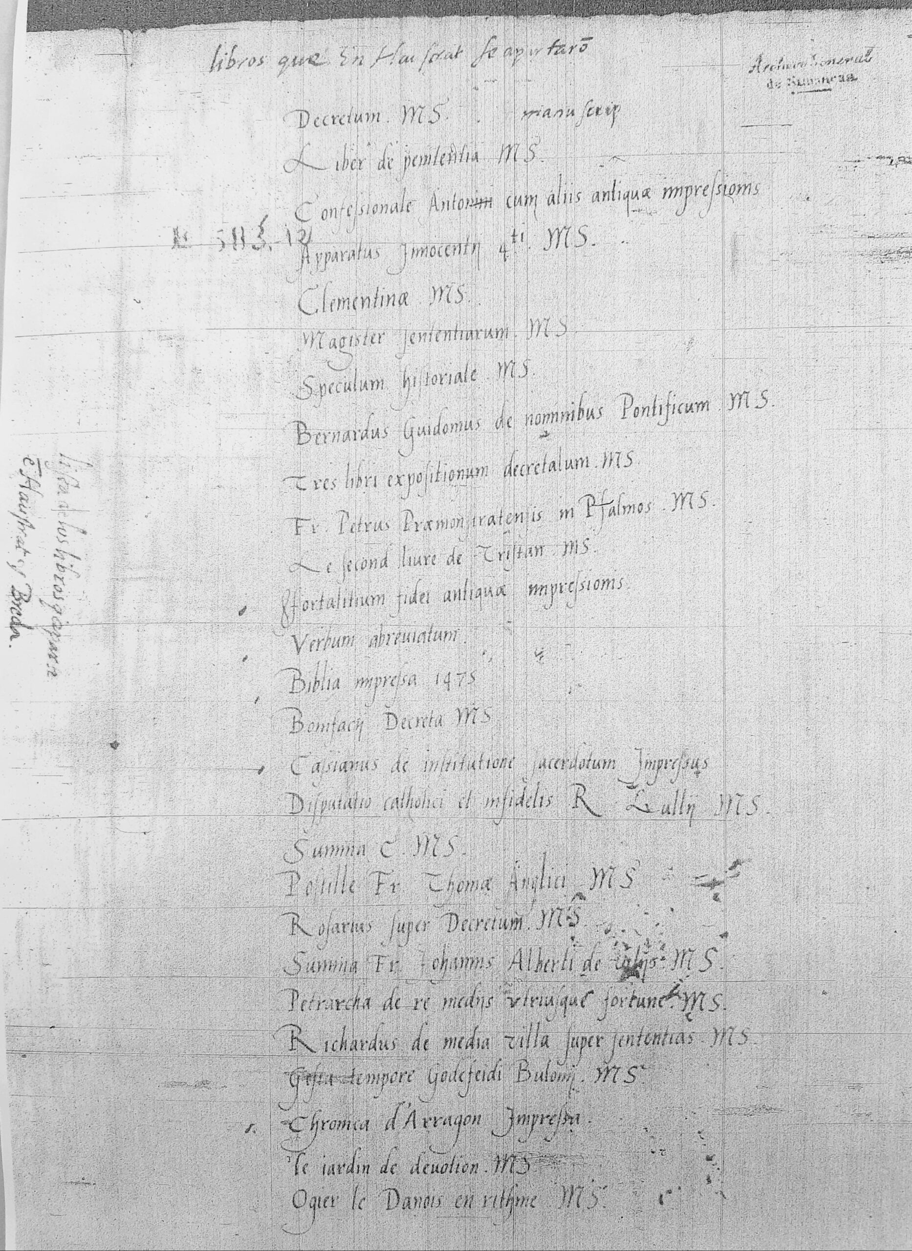 Nota: 4 Apparatus in quinque libros Decretalium; la Biblioteca Nacional de España conserva un manuscrito del siglo XIV (Mss/12244),